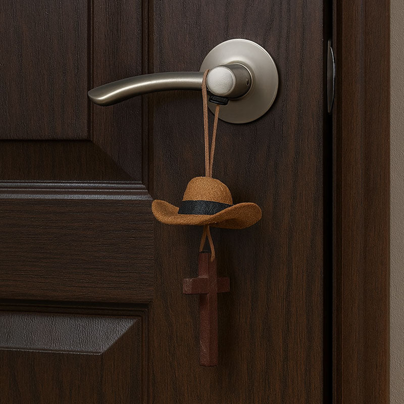 This Handcrafted Cowboy Hat & Cross Ornament swings gently as you drive, adding a touch of rustic charm and a reminder of faith to your car's interior. Whether you drive a pickup truck or a city sedan, let your spirit ride free! 🐎
